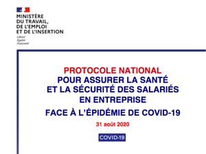 Le protocole national pour assurer la santé et la sécurité des salariés en entreprise face à l’épidémie de COVID-19 se substitue au protocole national de déconfinement. Il est applicable depuis le 1er septembre 2020. Cette mise à jour du protocole découle d’un avis du Haut Conseil de la santé publique (HCSP), publié le 14 août 2020, relatif à la transmission du virus par aérosols.